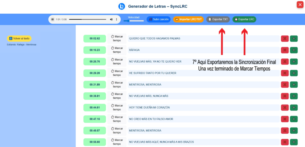 Al finalizar la sincronización puedes exportar la letra: