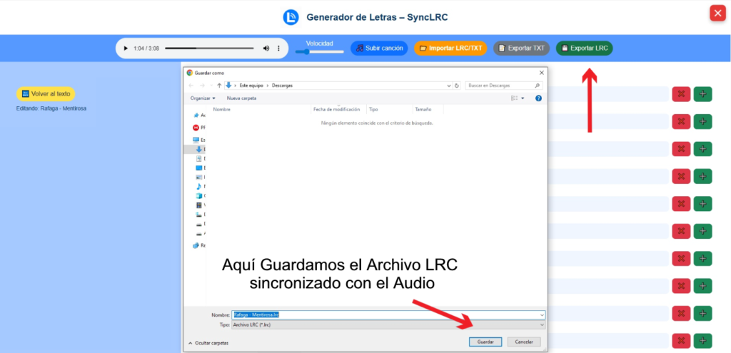 Exportar LRC: crea el archivo totalmente sincronizado con el audio, listo para reproductores compatibles.